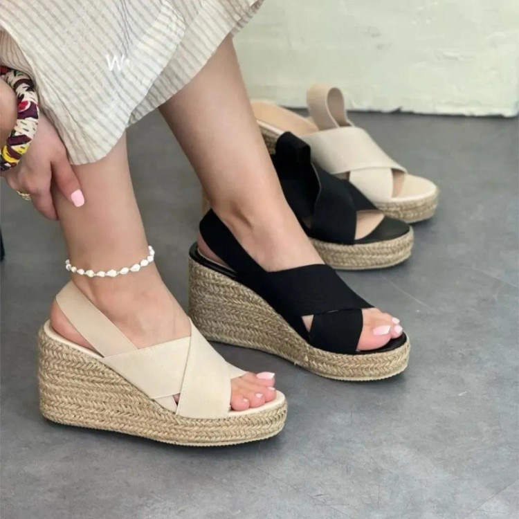 موجود در دو رنگ مشکی و کرم صندل کنفی جدید زیره پییو جنس رویه میکرو سوییت درجه یک لژ هشت سانت سبک و راحت قالب استاندارد با کیفیت ارسال فوری