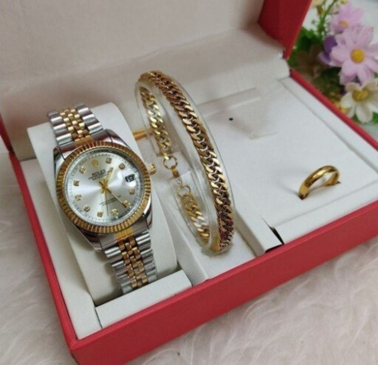 ⏳ ست ساعت، دستبند و حلقه استیل زنانه رولکس ROLEX