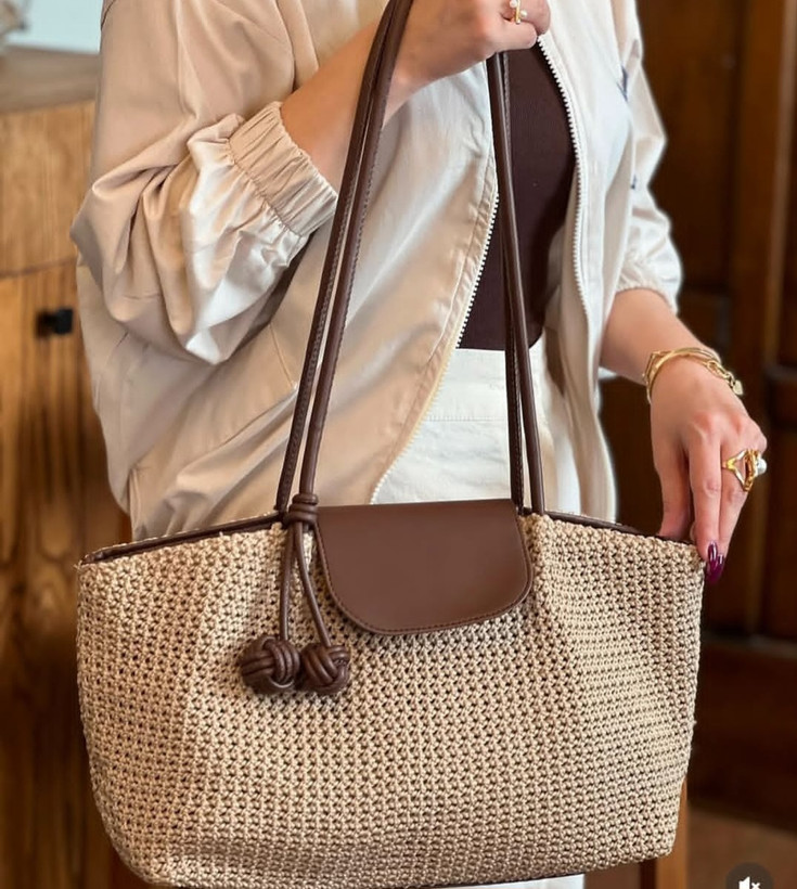 کیف زنانه حصیری و چرم وارداتی ترکیب چرم و حصیری استرکشی شده کد 446HA