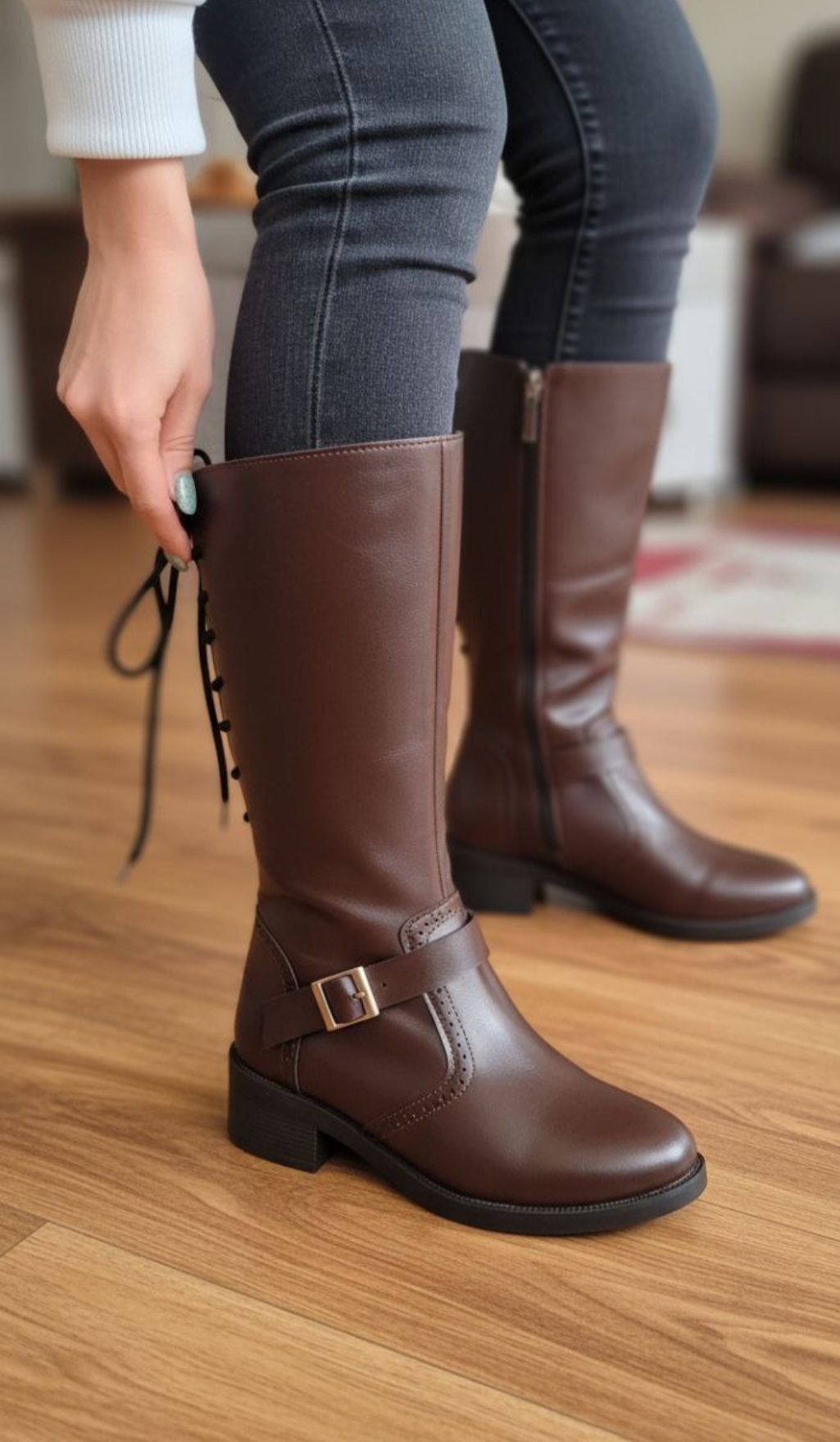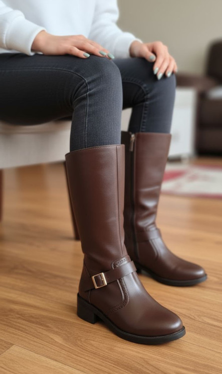 بوت زنانه با زیره پی وی سی رویه چرم ارسال رایگان کد 669