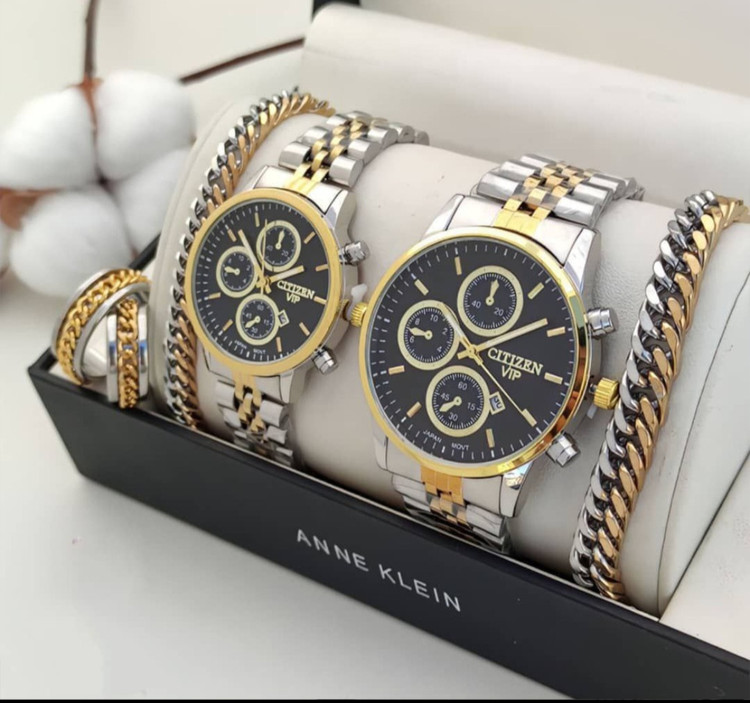 ✨ #مجموعه ست #ساعت #سیتیزن VIP بند استیل دو رنگ – صفحه مشکی ✨