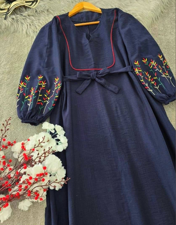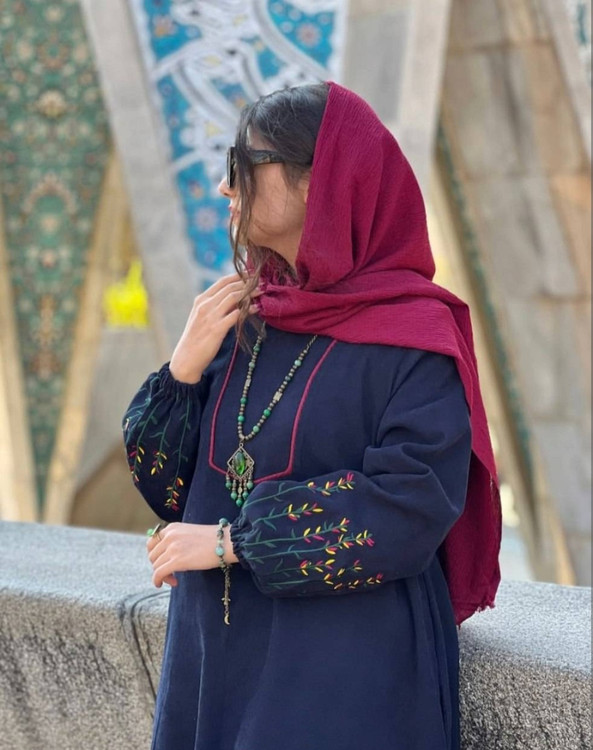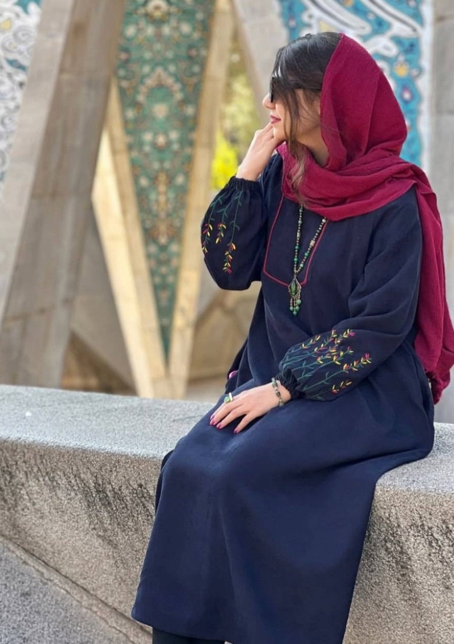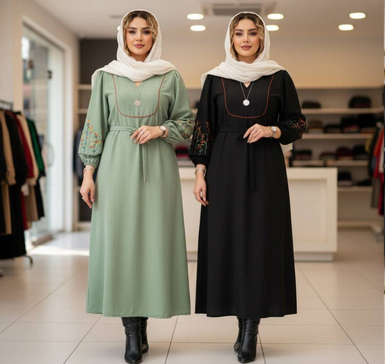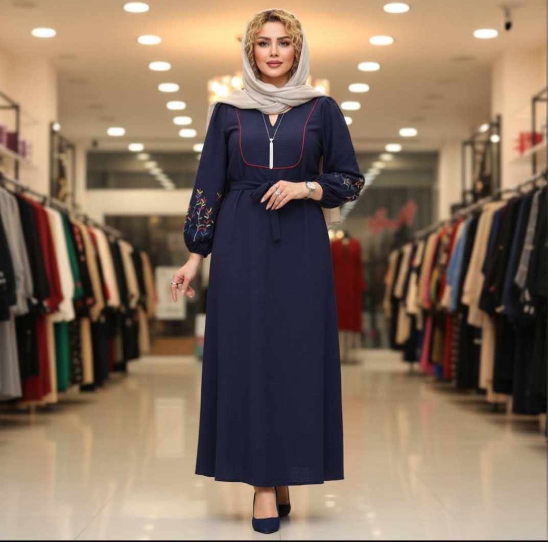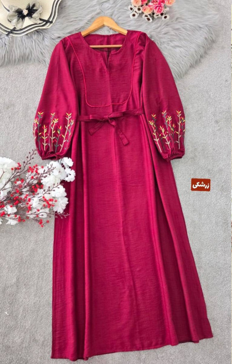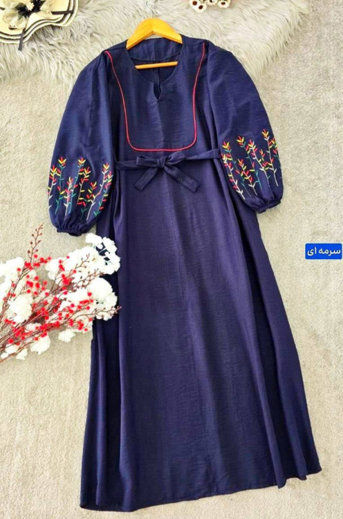 قد 127 تا 132 دور سینه 116فری سایز (40_50) قد آستین از یقه 63 دوربازو 42 دور باسن 130 دور مچ کش دمپا پایین کار 150 گلدوزی شده