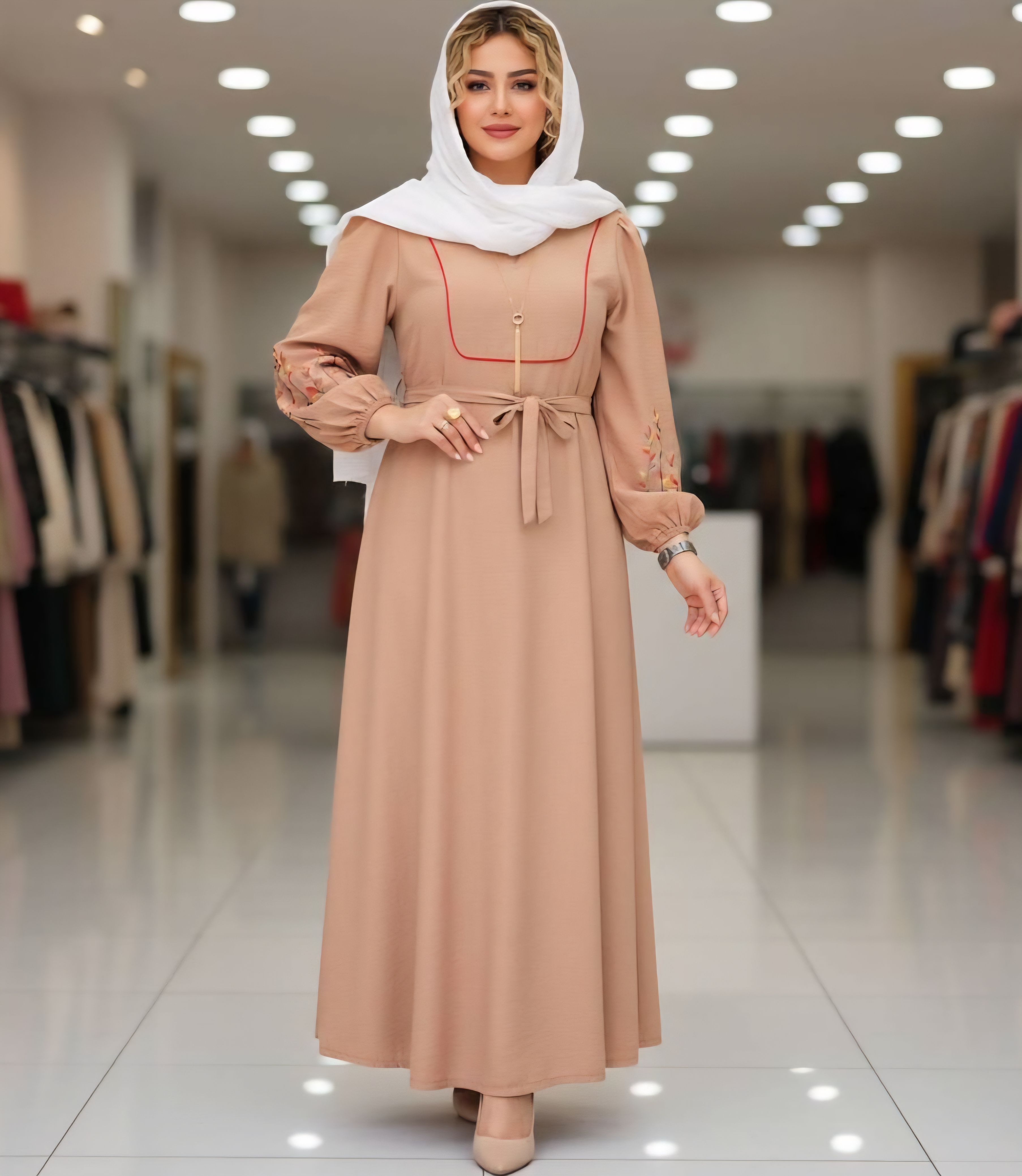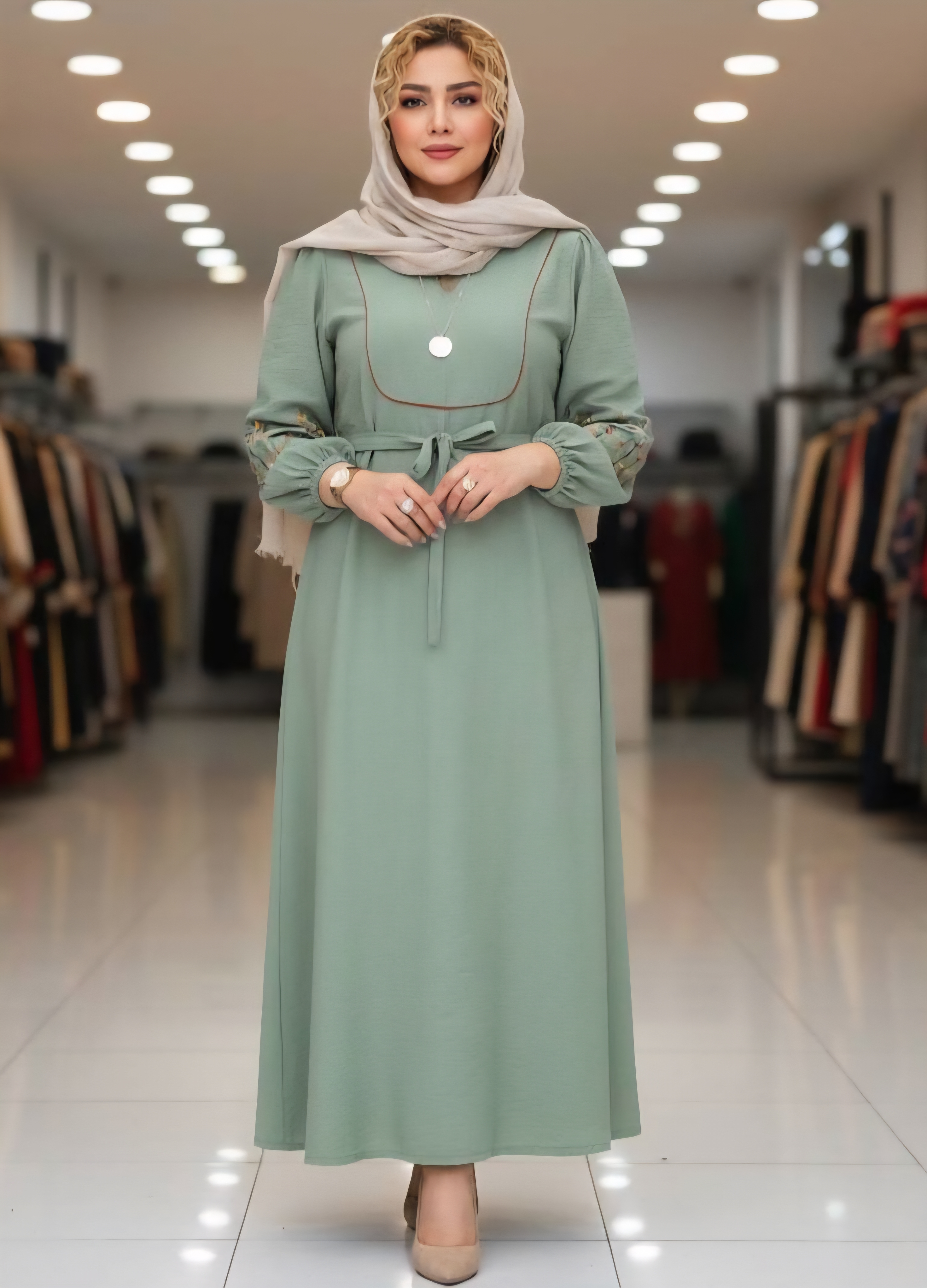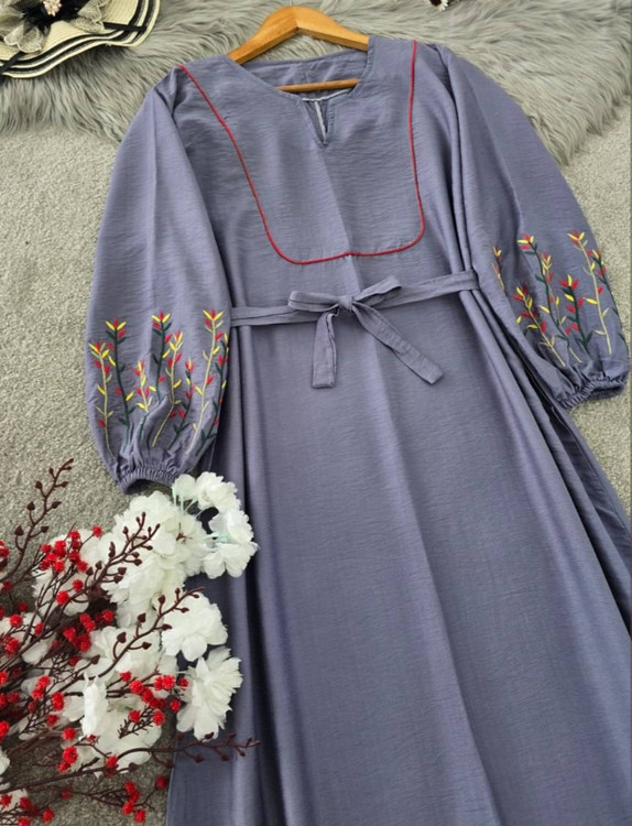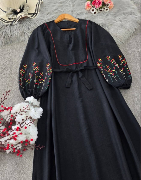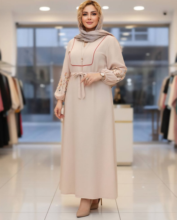قد 127 تا 132 دور سینه 116فری سایز (40_50) قد آستین از یقه 63 دوربازو 42 دور باسن 130 دور مچ کش دمپا پایین کار 150 گلدوزی شده