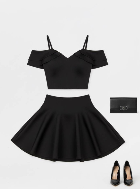 ست کراپ و دامن مجلسی فانتزی نیلو